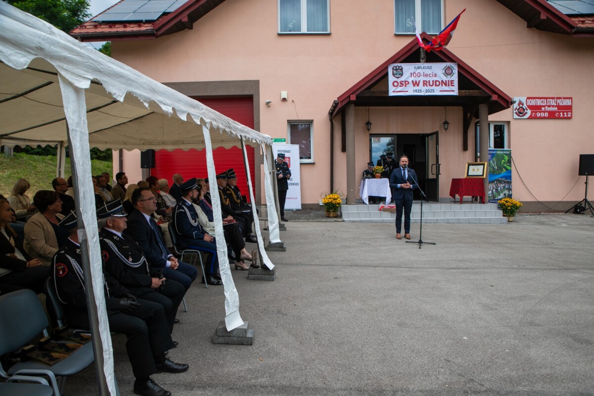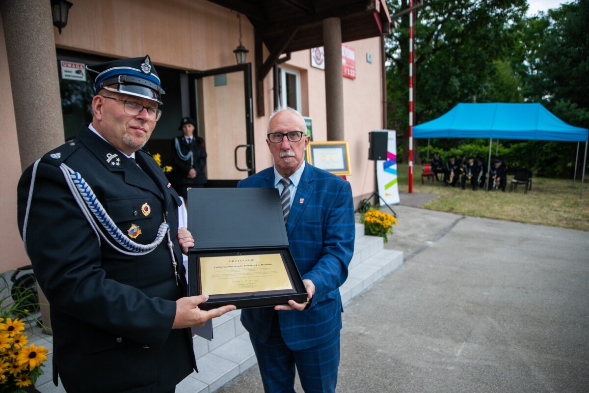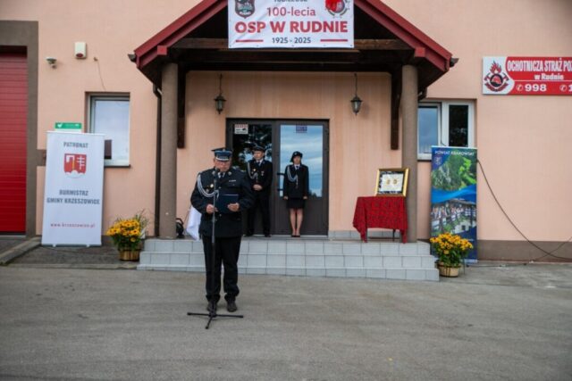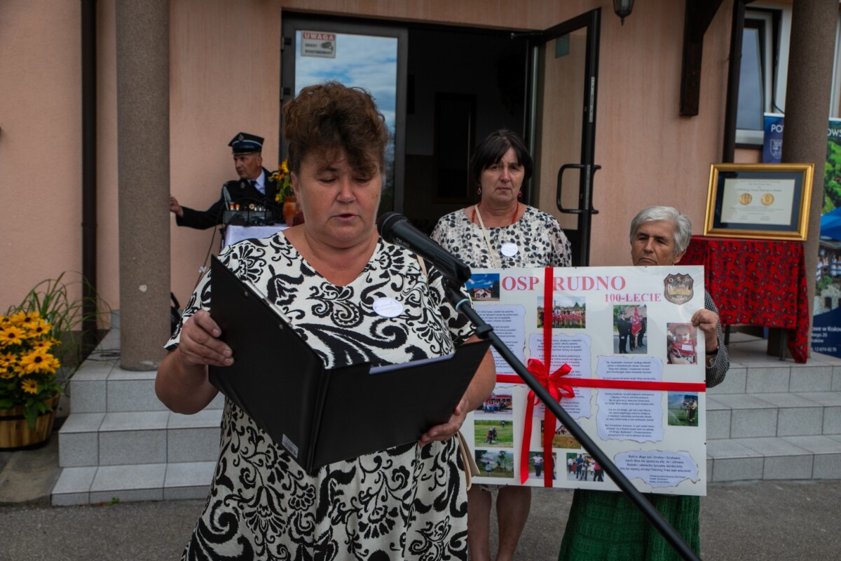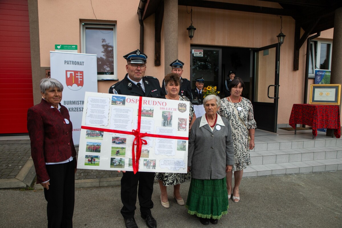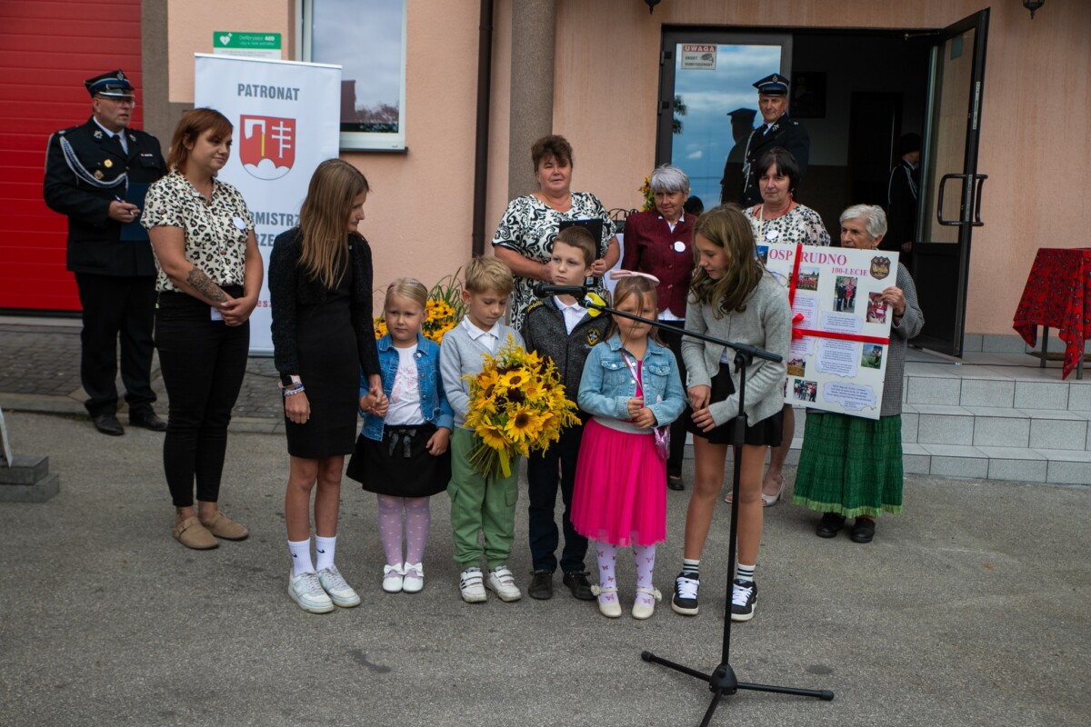 Podczas uroczystości przypomniano historię jednostki. OSP w Rudnie powstała w 1925 roku z inicjatywy mieszkańców, którzy chcieli lepiej chronić swoją miejscowość przed pożarami. Pierwotnie wyposażenie strażaków ograniczało się do ręcznej sikawki, beczkowozu i kilku węży, a druhowie do akcji ruszali w drewnianych hełmach. Z biegiem lat jednostka rozwijała się – powstała remiza, zakupiono pierwsze motopompy, a później samochody pożarnicze. Dziś OSP Rudno dysponuje nowoczesnym sprzętem ratowniczym i wozem bojowym, a druhny i druhowie biorą udział nie tylko w akcjach gaśniczych, ale także w ratownictwie drogowym, zabezpieczeniach imprez, działaniach edukacyjnych i społecznych.