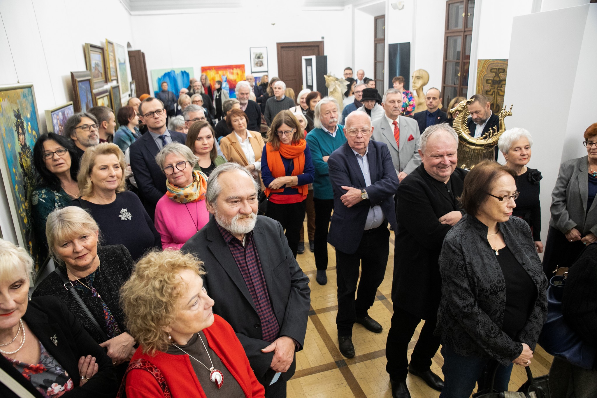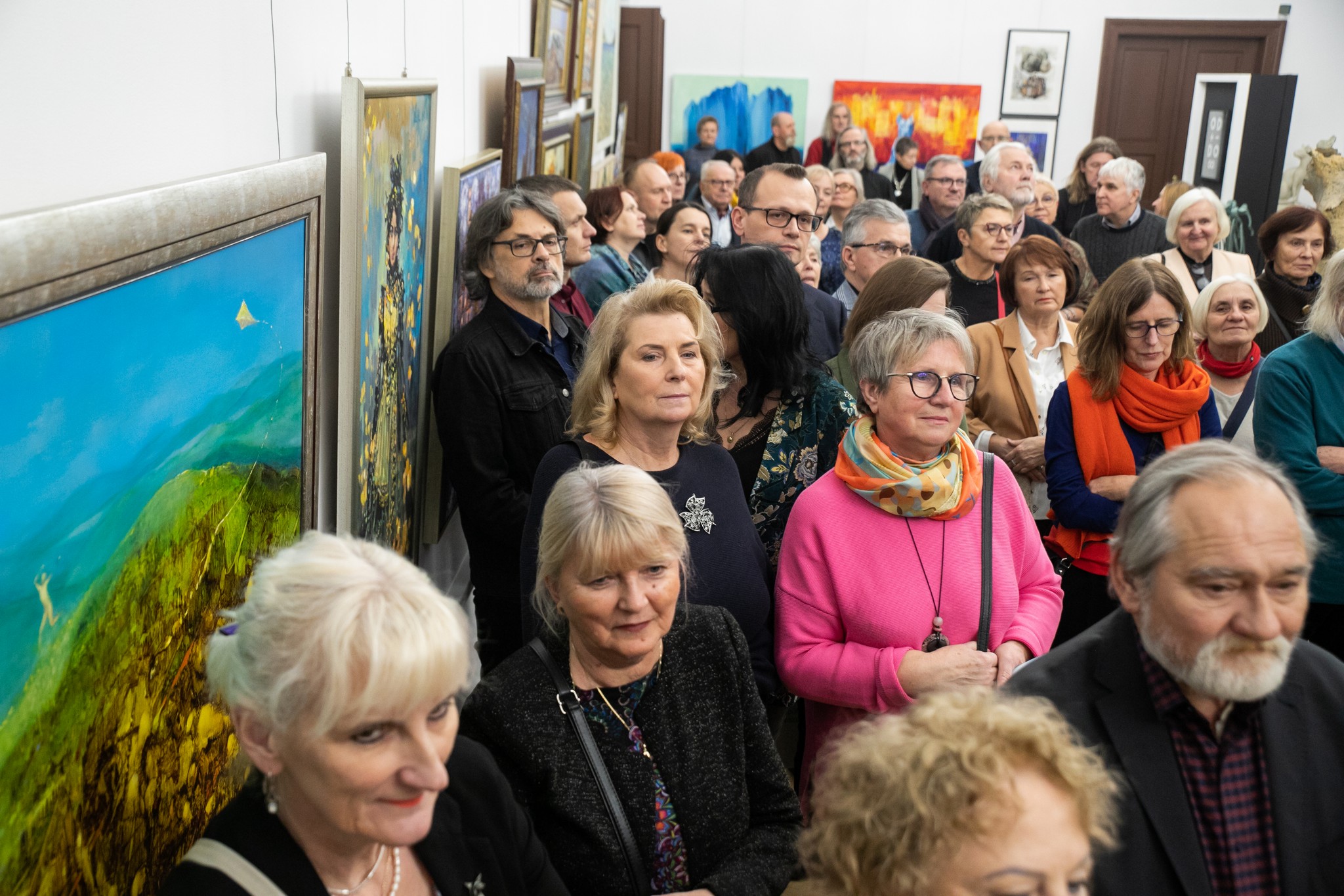 Na wernisaż przybyły prawdziwe tłumy! Nic dziwnego, skoro samych artystów biorących udział w wystawie jest czterdziestu. A sama wystawa jest jak jej tytuł: to prawdziwy kalejdoskop kolorów, stylów, form, treści. Toteż podczas otwarcia Anna Miga przytoczyła słowa Korola Estreichera z jego fundamentalnej dla interpretacji sztuki książki „Historia sztuki w zarysie”: Sztuka – nie jest jednolitym drzewem, ale raczej łąką, na której żyją rośliny wszelkich gatunków. Żyją, wydają owoce, umierają.