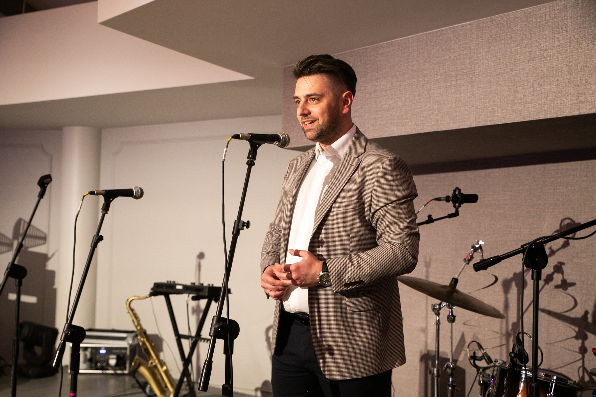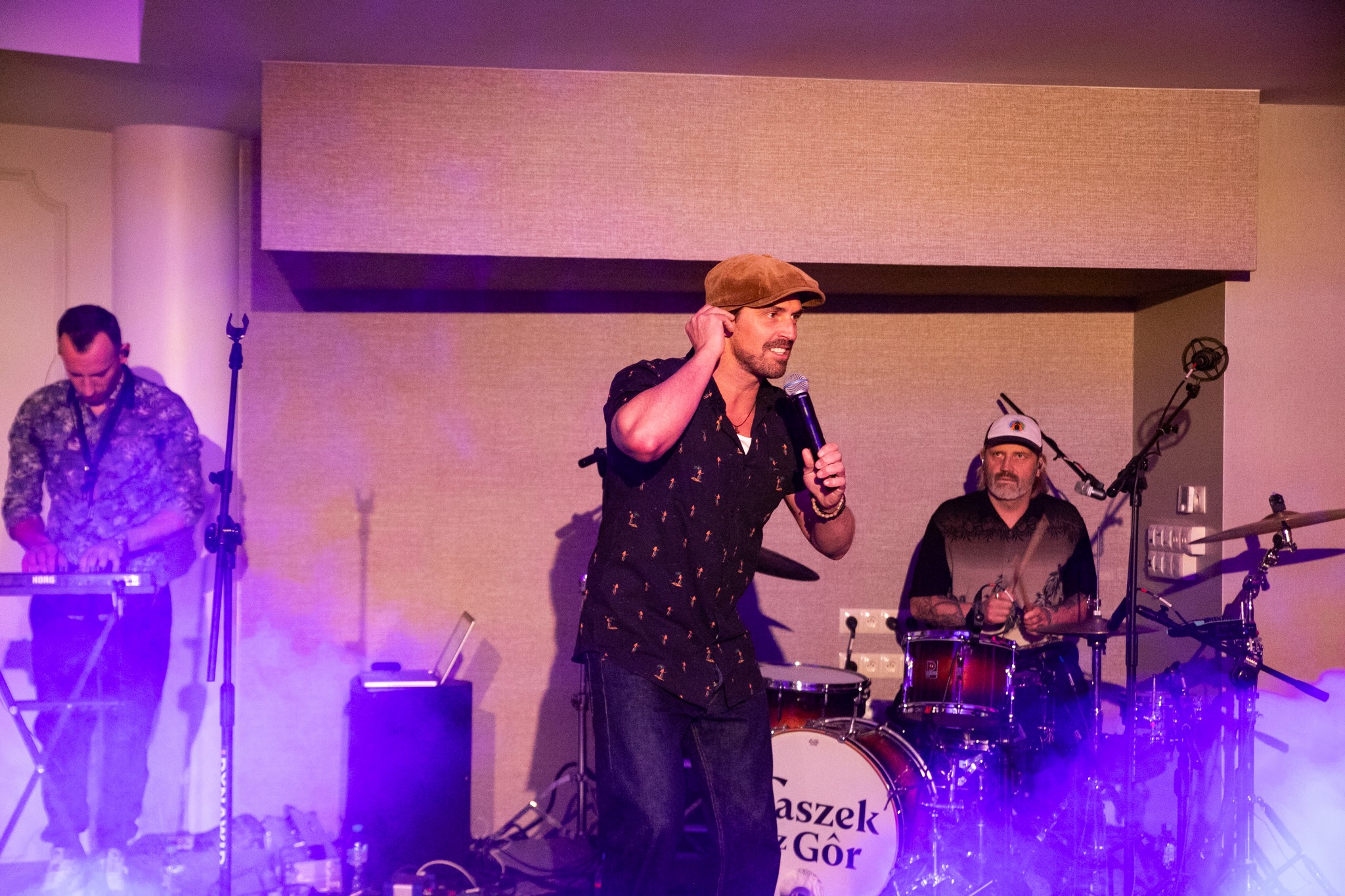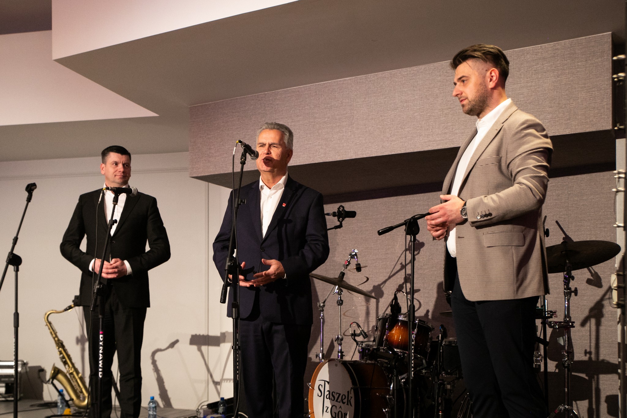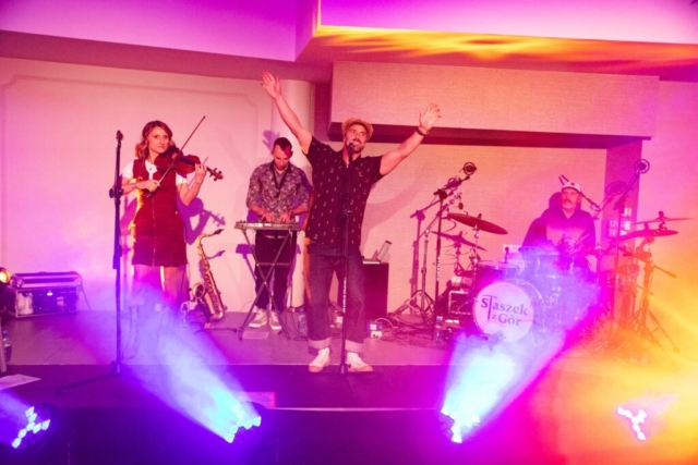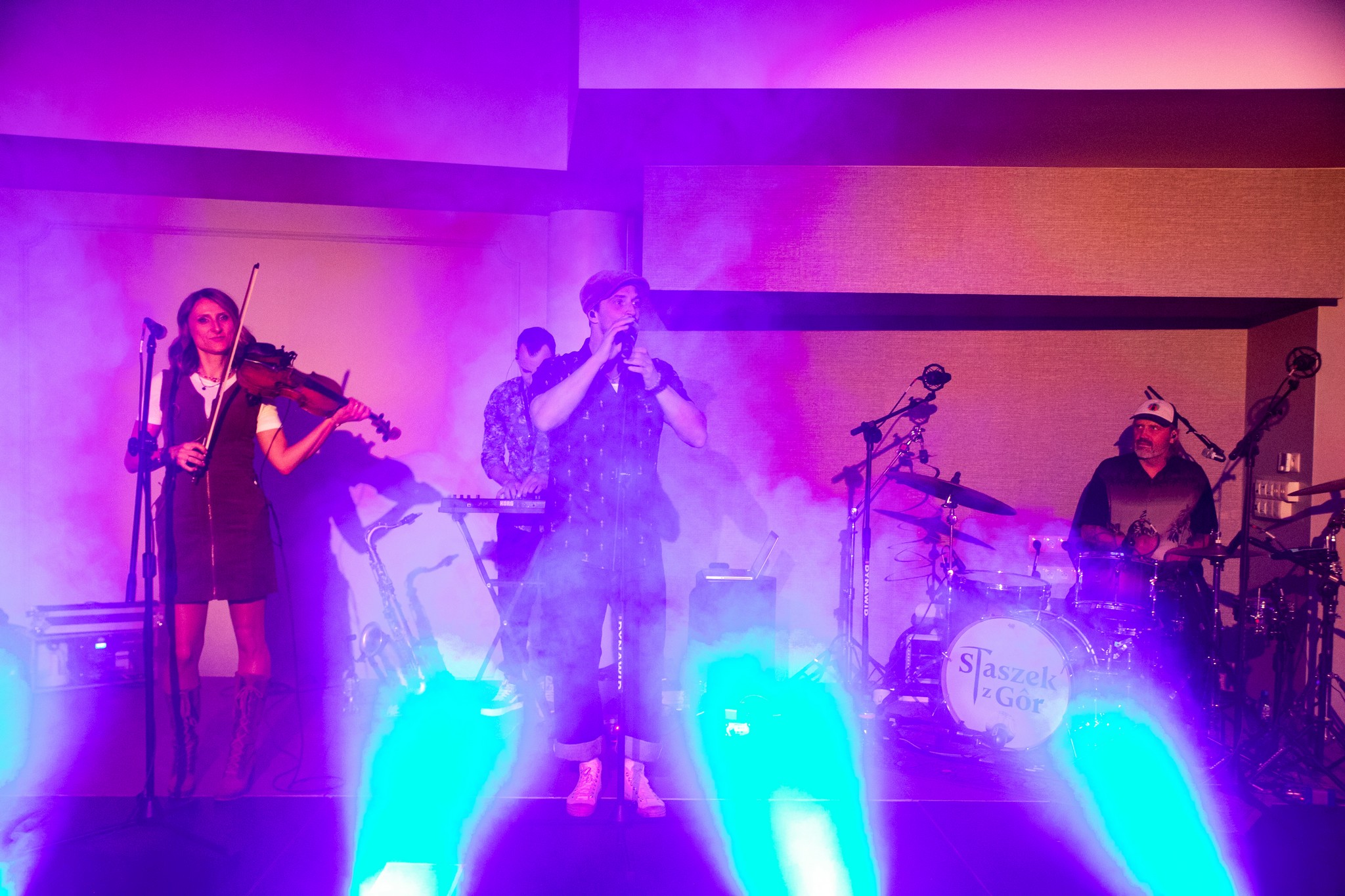 Na scenie sali weselnej Tiffany wystąpił Staszek z Gór, czyli Stanisław Karpiel-Bułecka wraz z zespołem. Był to wieczór pełen góralskiej energii, w którym tradycyjne brzmienia skrzypiec i góralskich instrumentów spotkały się z nowoczesnymi elektronicznymi beatami, tworząc niepowtarzalną atmosferę. Publiczność miała okazję usłyszeć zarówno autorskie utwory artysty, jak i znane, energetyczne interpretacje góralskich melodii w nowoczesnym wydaniu. Wieczór był dedykowany przede wszystkim paniom, które zostały obdarowane kwiatami. Po koncercie uczestnicy mieli okazję delektować się słodkim poczęstunkiem, kontynuując świętowanie w miłej i serdecznej atmosferze.
