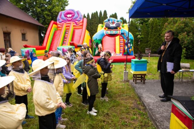 20 maja zielony teren za Muzeum Ziemi Krzeszowickiej zamienił się w tętniącą życiem krainę pszczół! A wszystko to za sprawą barwnego korowodu dzieci ze szkół w Nowej Górze i Ostrężnicy, które – przebrane za pszczoły i pszczelarzy – uroczyście zainaugurowały lokalne obchody Światowego Dnia Pszczół w ramach Dni Otwartych Muzeum.