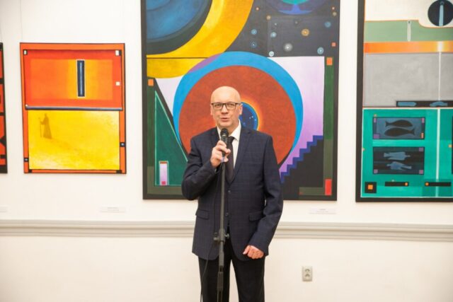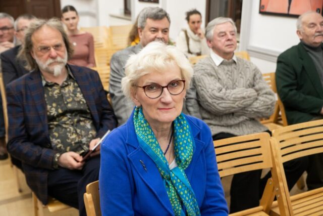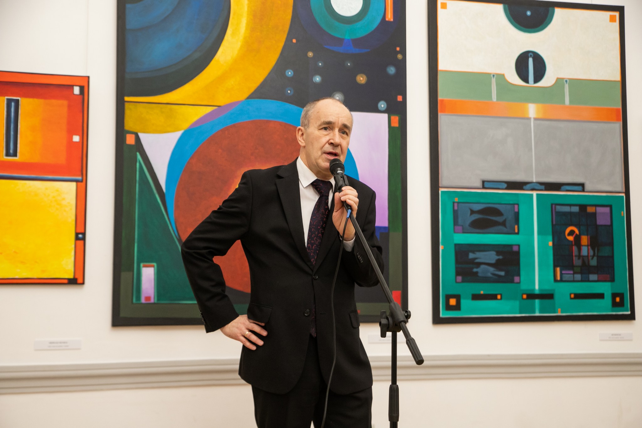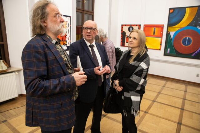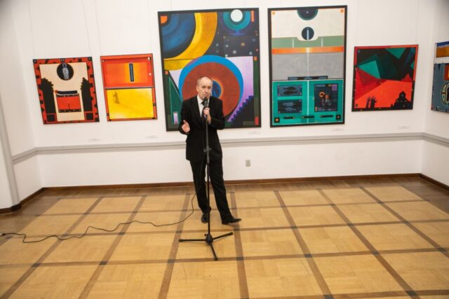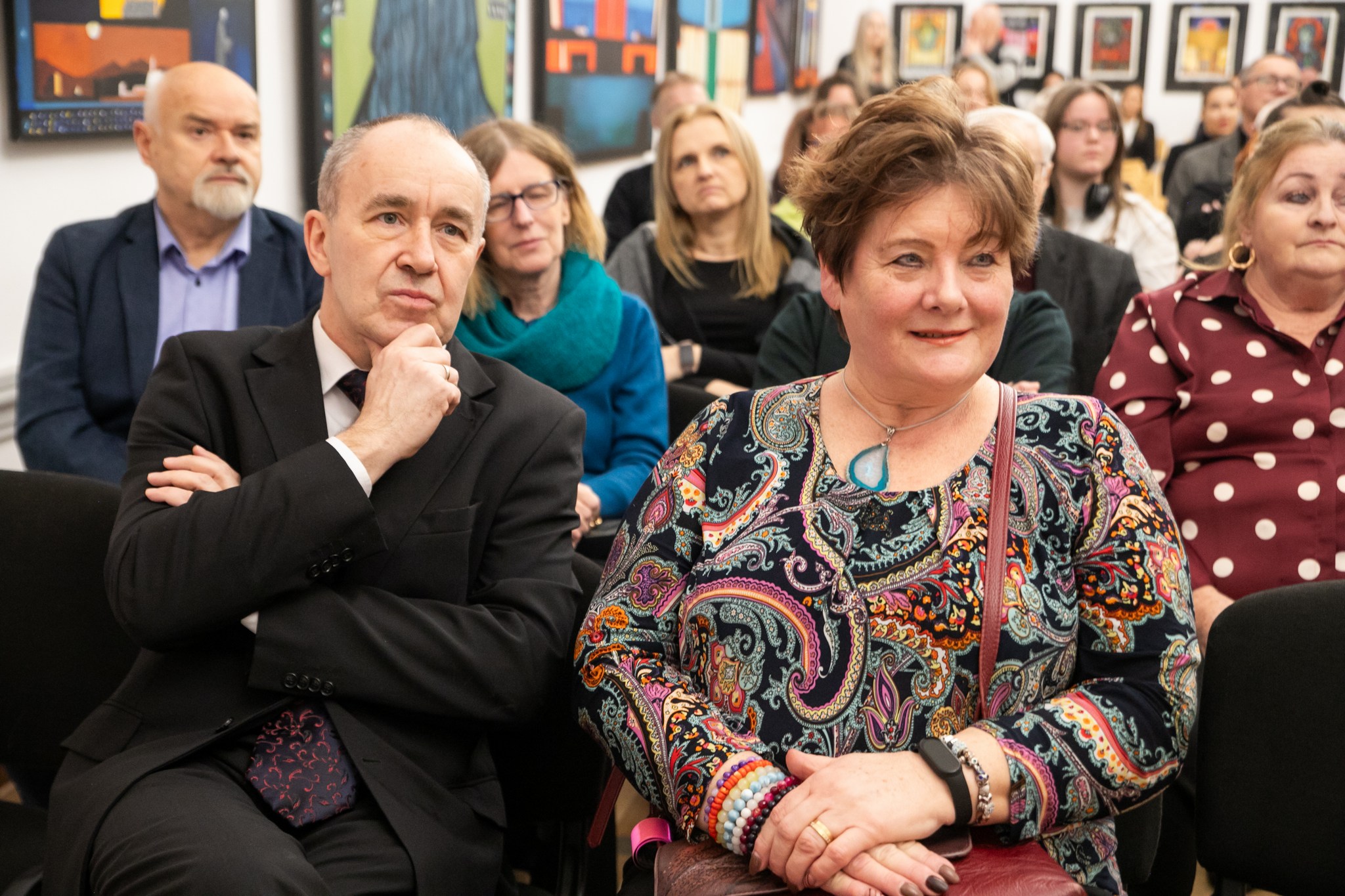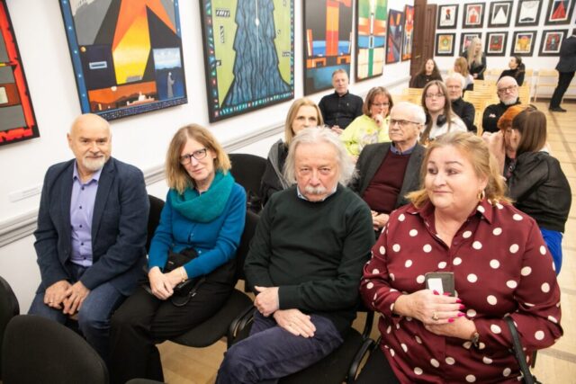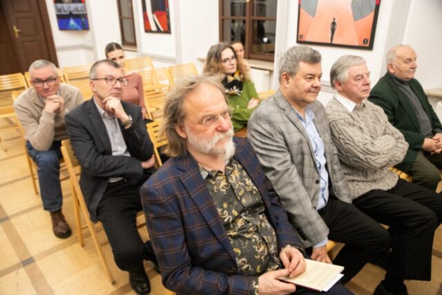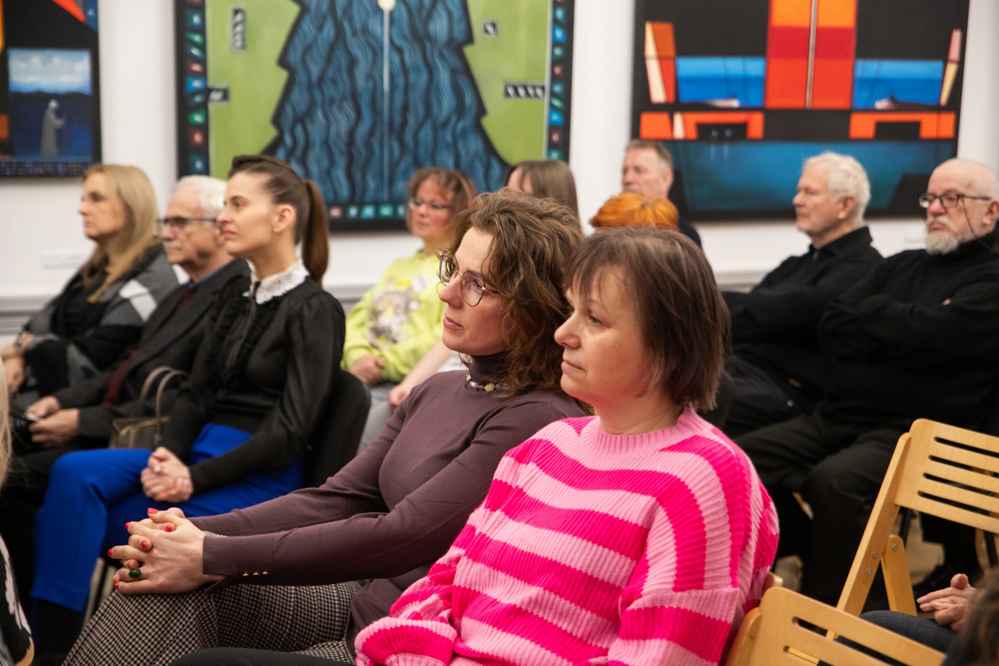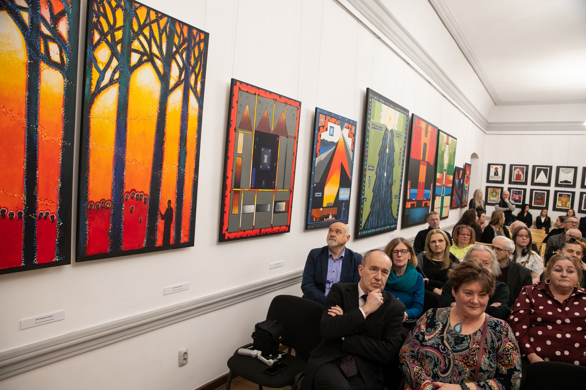 Bohaterem wieczoru był Michał Bogucki – malarz, performer, autor polichromii i witraży, a także znawca i twórca ikon. Artysta, urodzony w 1946 roku w Warszawie, jest absolwentem Akademii Sztuk Pięknych w Warszawie, gdzie studiował w pracowni prof. Stefana Gierowskiego. Jego twórczość od lat oscyluje wokół tematów duchowych, społecznych i egzystencjalnych, a kluczową rolę odgrywa w niej światło, rozumiane zarówno jako element malarski, jak i metafizyczny znak.