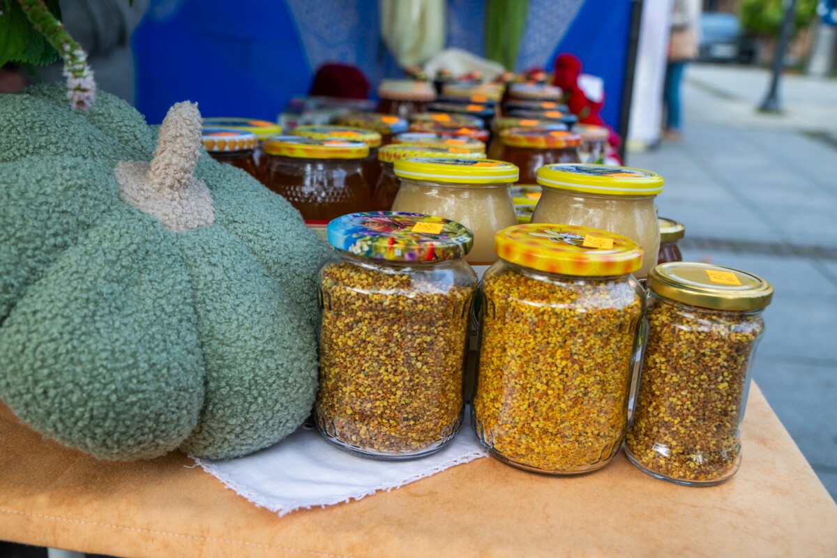 W ramach Miodobrania od piątku do niedzieli na rynku można było kupić różne gatunki miodów, produkty pszczele a nawet miód pitny.