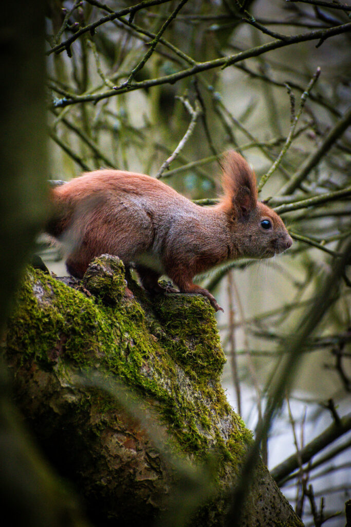 Zanim jednak pojawi się nowe pokolenie, będące samotnikami wiewiórki łączą się w pary. Jeszcze zimą (w styczniu bądź lutym) samce aktywizują się w poszukiwaniu swej wybranki. W czasie zalotów samiec lub często kilka samców, podąża za samicą (która informuje o swojej gotowości zostawiając sygnały zapachowe), choć bliżej prawdy byłoby, gdybym nazwała to pościgiem. Zwierzęta poruszają się po pniu sosny (biorąc przykład z mojego podwórka) tak szybko, że czasem trudno nadążyć, lub z pewnością ocenić, która z nich ściga, a która jest ścigana. W rozeznaniu się w sytuacji nie pomaga brak dymorfizmu płciowego, czyli różnić wyglądzie samca i samicy. Atrakcyjności tego godowego spektaklu dodaje intensywna wokalizacja (popiskiwanie), która daje wyraz podekscytowaniu zwierząt, charakterystyczne podskoki, rytmiczne ruchy ogonem czy uderzanie pazurów o korę drzew. Takie gonitwy mogą trwać naprawdę długo, i nie zawsze kończą się sukcesem. Mam nadzieję, że już wkrótce będę mogła obserwować młode, które po okresie przebywania w gnieździe, kiedy ślepe i bezbronne będą pozostawały pod opieką matki – pojawią się na gałęziach drzew i rozpoczną poszukiwanie swojego miejsca do życia.