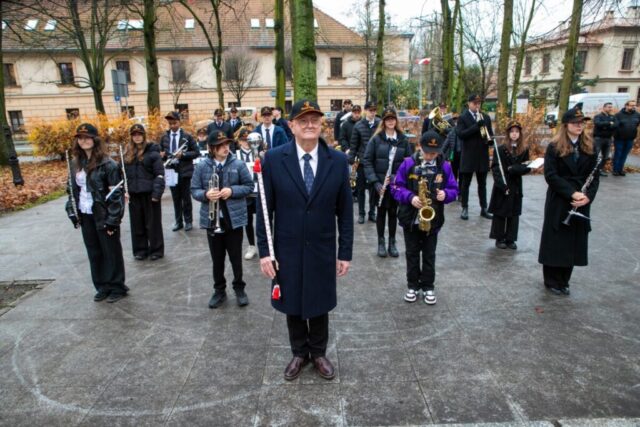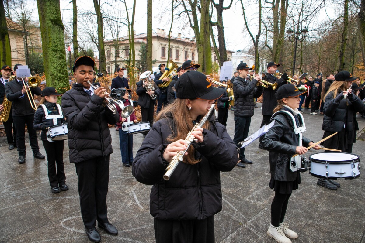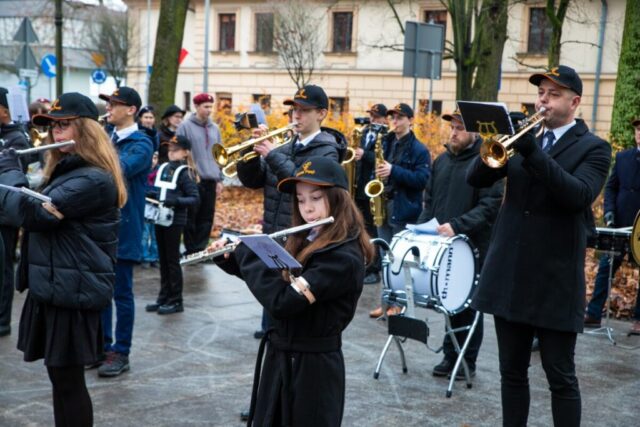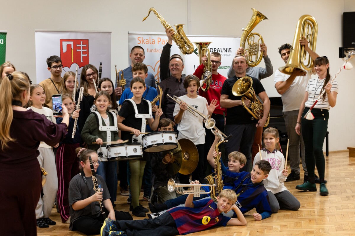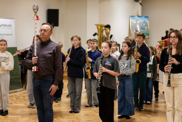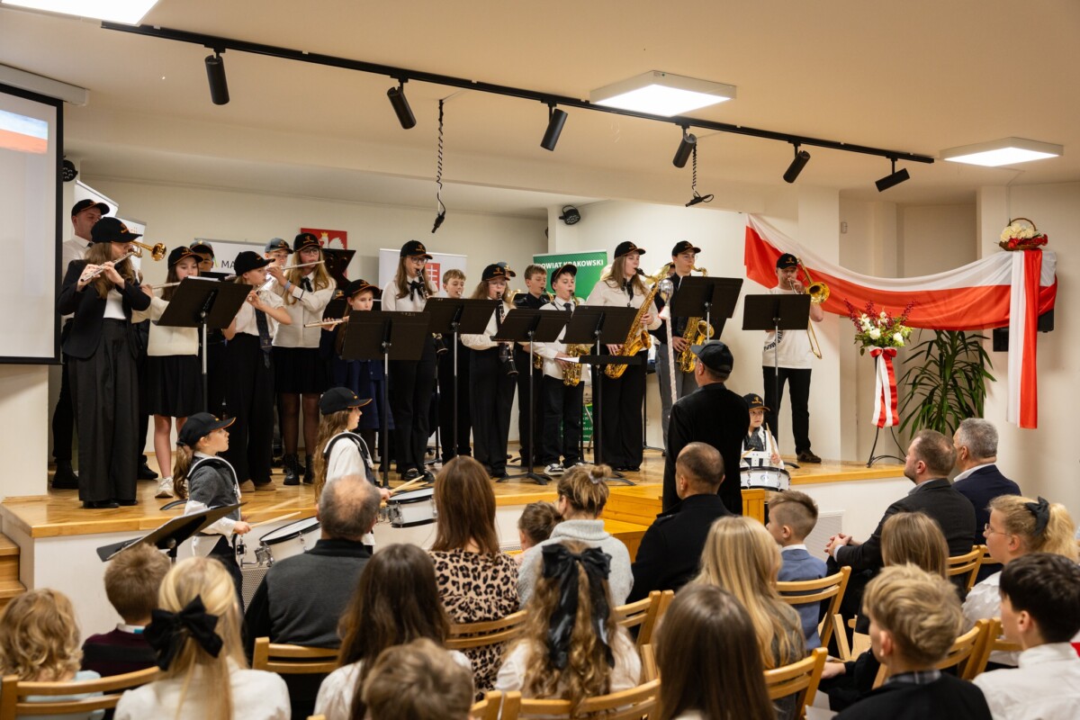 Zwieńczeniem zadania „Marszowy krok…” był Koncert Muzyki Polskiej i wspólne śpiewanie pieśni patriotycznych w Państwowej Szkole Muzycznej I st. w Krzeszowicach z udziałem Wojciecha Pogana, wicestarosty Powiatu Krakowskiego, Wacława Gregorczyka, burmistrza Gminy Krzeszowice, oraz Jerzego Wnęka, wiceprzewodniczącego Rady Miejskiej w Krzeszowicach To był wyjątkowy koncert — wystąpiła Orkiestra Dęta Skala Pasji pod dyrekcją Jerzego Suruło, orkiestra smyczkowa prowadzona przez Joannę Janas i chór pod batutą Agnieszki Żak, a także soliści – uczniowie krzeszowickiej szkoły muzycznej, ponad 100 osób na scenie. Piękna muzyka wybitnych polskich kompozytorów, grana z wewnętrznej potrzeby, oraz wzruszające teksty pieśni patriotycznych wypełniły nie tylko zbyt małą, jak na taki koncert, aulę szkoły, lecz także serca krzeszowickiej publiczności. Zaproszeni goście i publiczność wspólnie z orkiestrą, chórem i profesjonalnym akompaniamentem Agnieszki Żak zaśpiewali pieśni ważne dla narodowej historii i tożsamości Polaków. Ten symboliczny gest wspólnego śpiewania podkreślił jedność, wspólnotę i dumę z polskiego dziedzictwa.