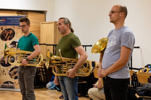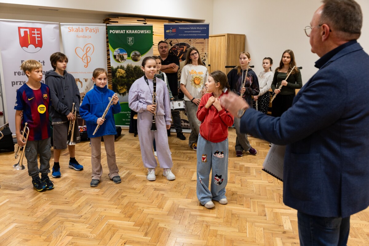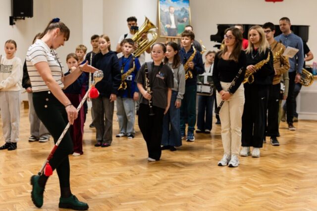 W Państwowej Szkole Muzycznej w Krzeszowicach odbyły się warsztaty, podczas których działająca przy szkole orkiestra dęta Skala Pasji podjęła naukę musztry orkiestrowej.