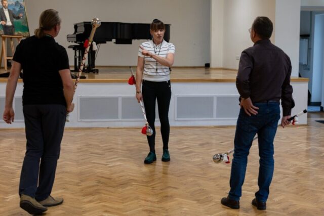 Ćwiczono zwroty z instrumentami, rozpoczęcie i zakończenie gry w marszu oraz doraźne zerwanie muzyki i zatrzymanie maszerowania bez wstrzymywania gry. To był wyczerpujący, ale bardzo owocny trening. Nauczył uczestników dyscypliny, odpowiedzialności za siebie i innych oraz zintegrował zespół.