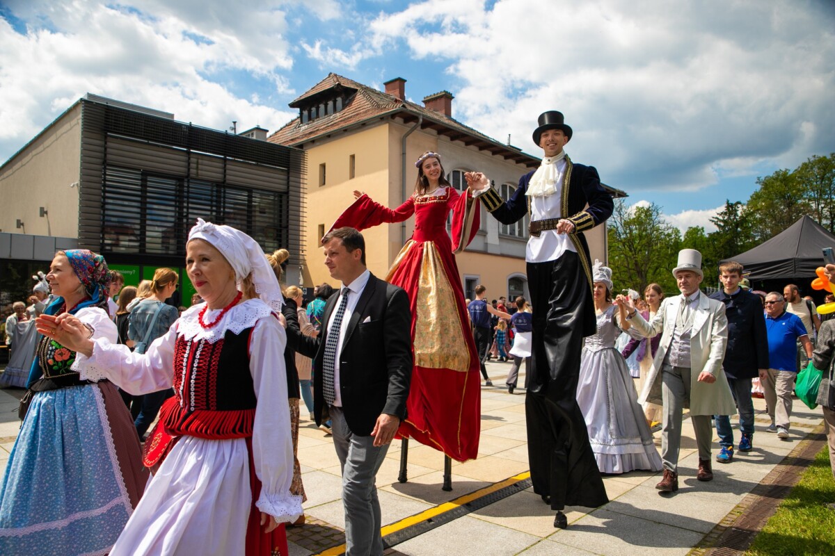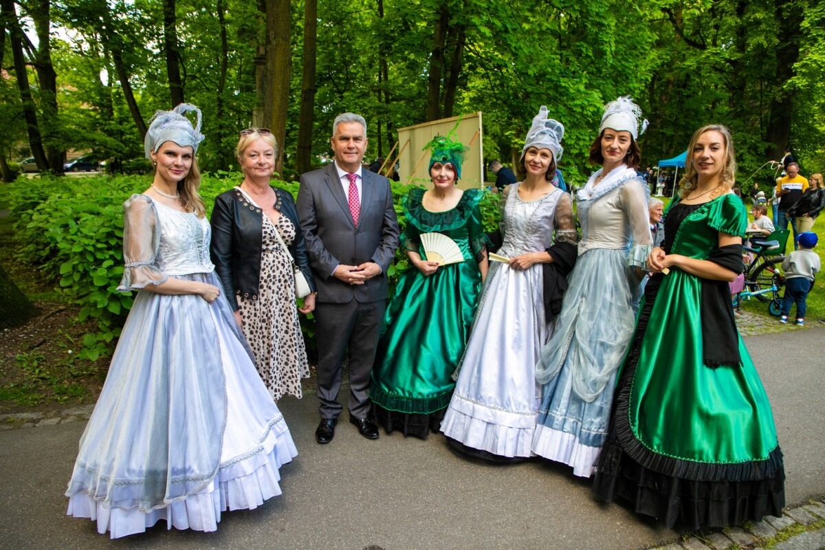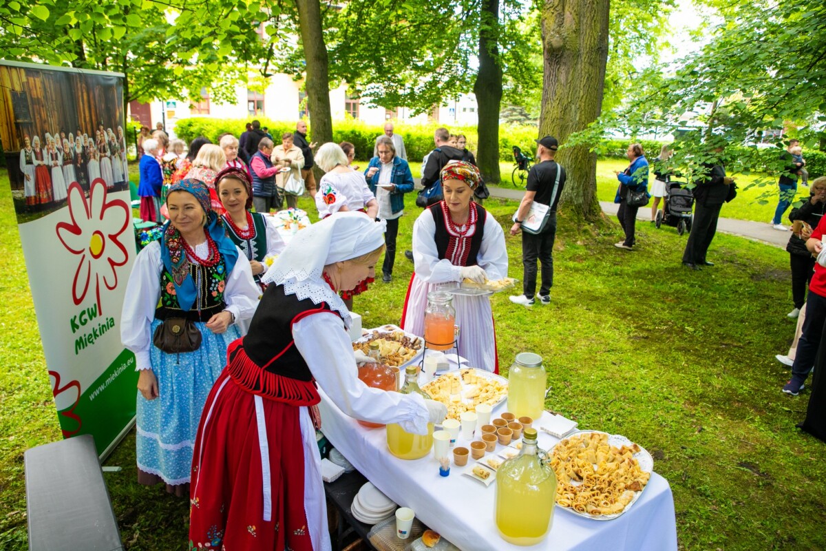 Park Bogackiego już od rana tętnił życiem. Punktualnie o 10:00 rozpoczęło się uwielbiane przez mieszkańców Śniadanie na Trawie, nieodzowny element każdej krzeszowickiej Majówki. Panie z Kół Gospodyń Wiejskich kusiły smakami regionalnych specjałów. Spacerując po parku, można było porozmawiać ze specjalistami z Małopolskiego Szpitala Rehabilitacyjnego, posmakować miodów z KTP „Barć”, czy dowiedzieć się o działaniach lokalnego ZHP. Dla najmłodszych przygotowano konkursy, warsztaty plastyczne i sportowe, a cały poranek ubarwiali swoimi animacjami artyści Teatru Rozrywki oraz „Ich Dworskie Wysokości” z Teatru Jednej Miny. W historyczny klimat wydarzenia doskonale wpisali się aktorzy Krzeszowickiego Teatru Rozrywki oraz wokalistki zespołu Fonte, ubrani w specjalnie przygotowane na tę okazję stroje, którzy chętnie pozowali do wspólnych zdjęć.