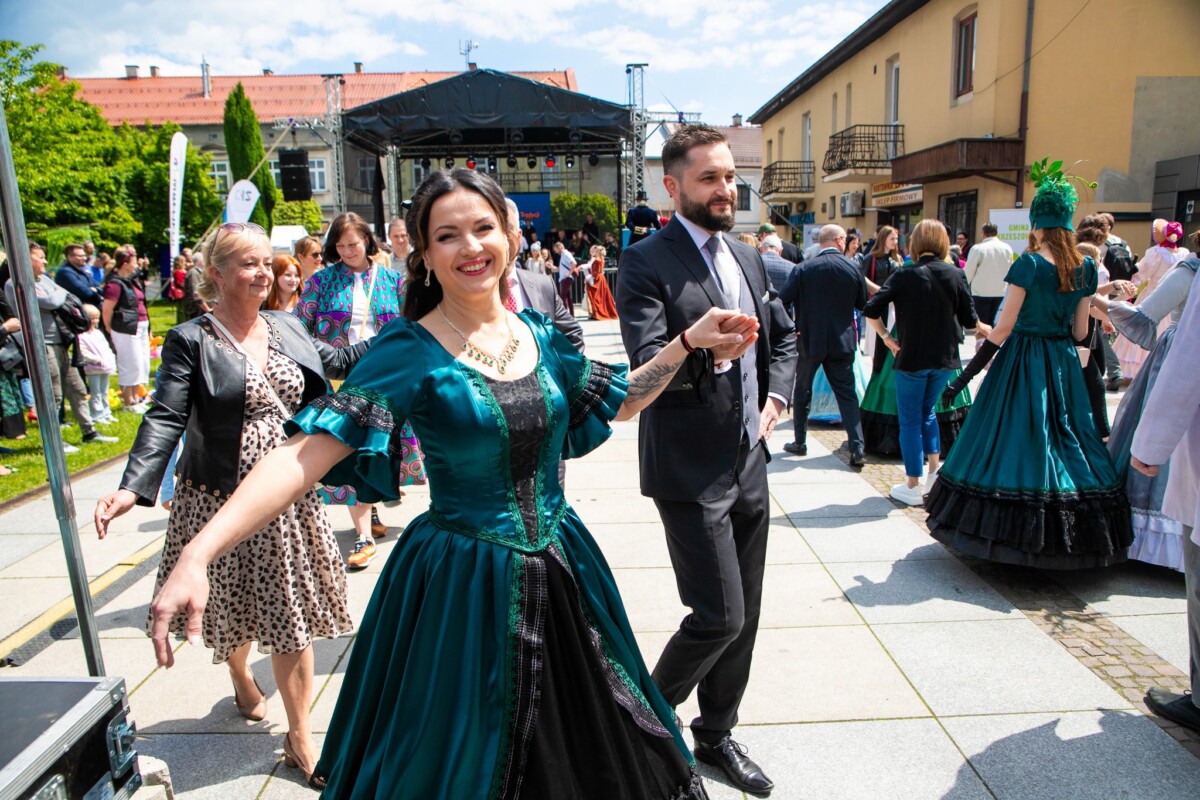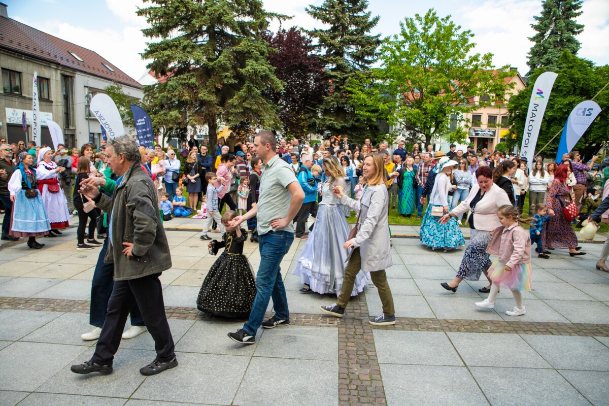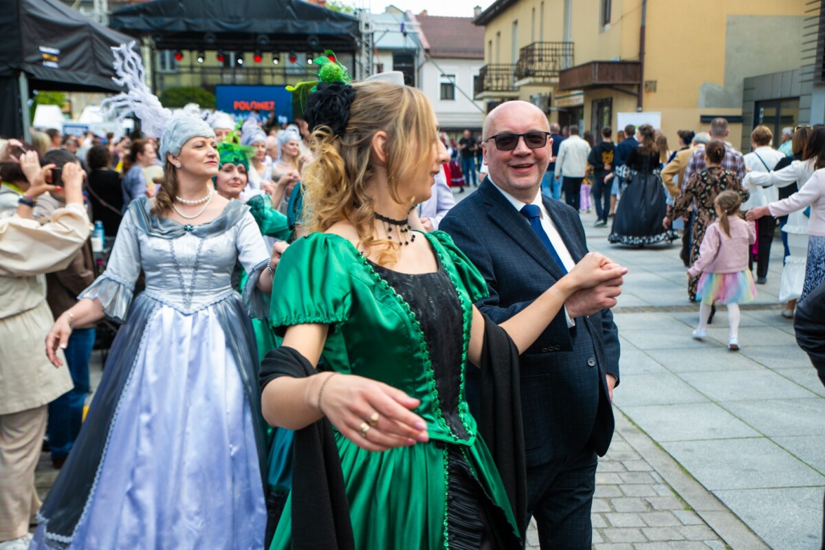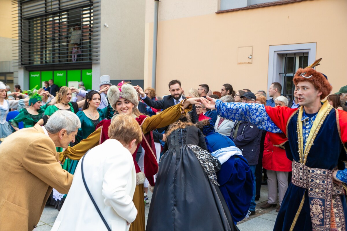 Już od 11:30 na krzeszowickim Rynku trwały przygotowania do wyjątkowego tańca. Dzięki instruktorom z Baletu Dworskiego Cracovia Danza, mieszkańcy i goście mogli nauczyć się kroków do majestatycznego poloneza, który o 12:00 popłynął przez Rynek. Do tańca przygrywała niezawodna Orkiestra Dęta Skala Pasji.