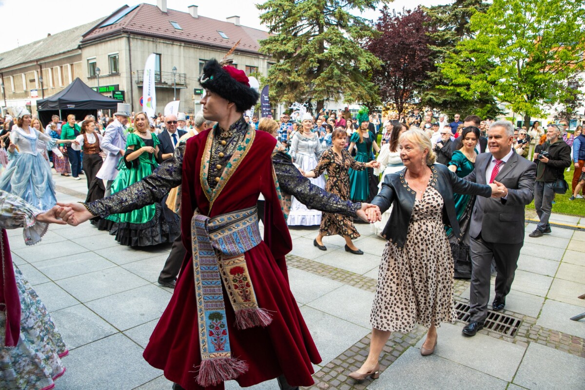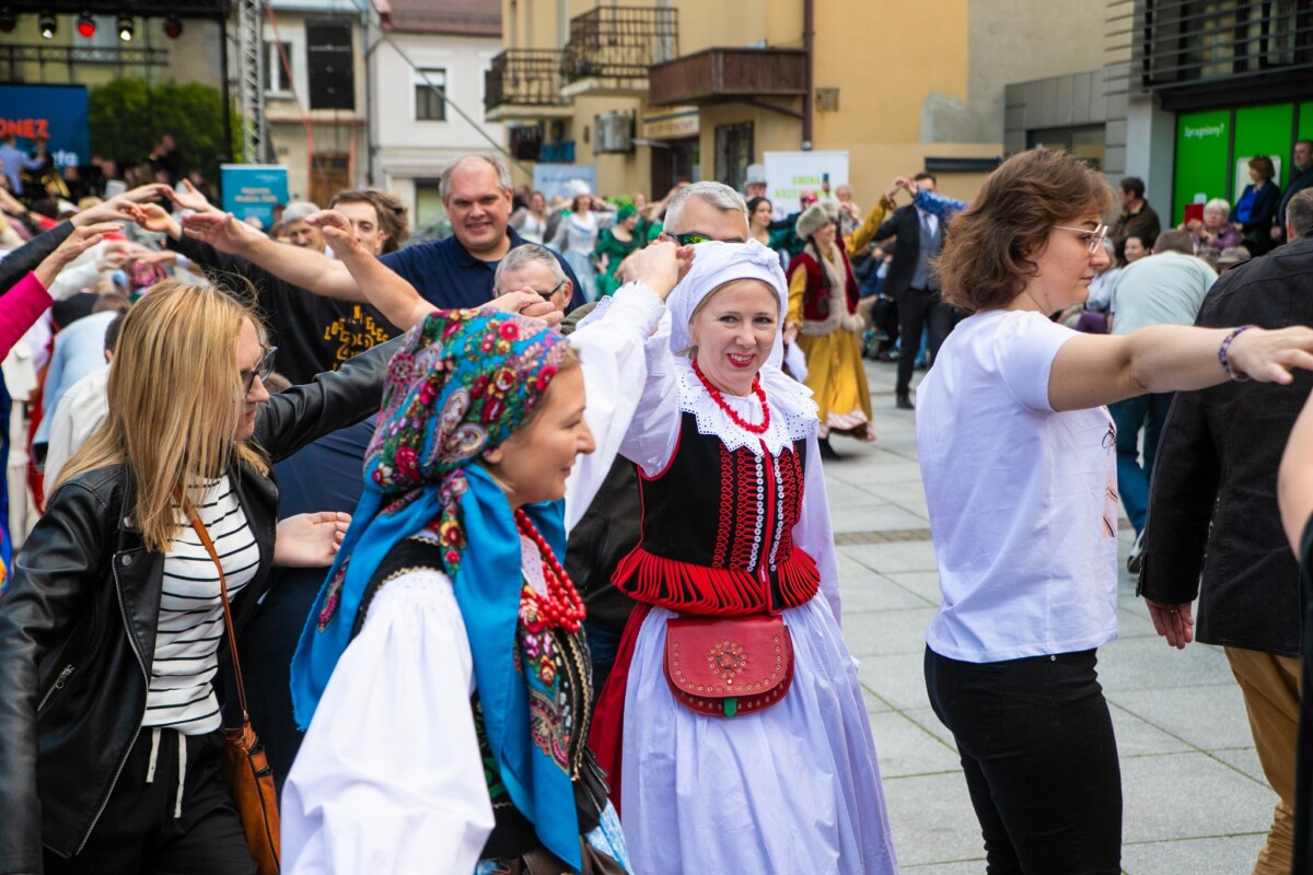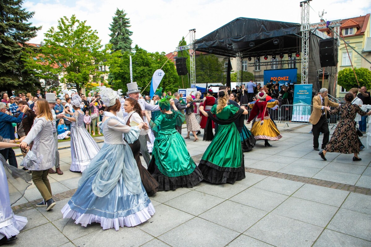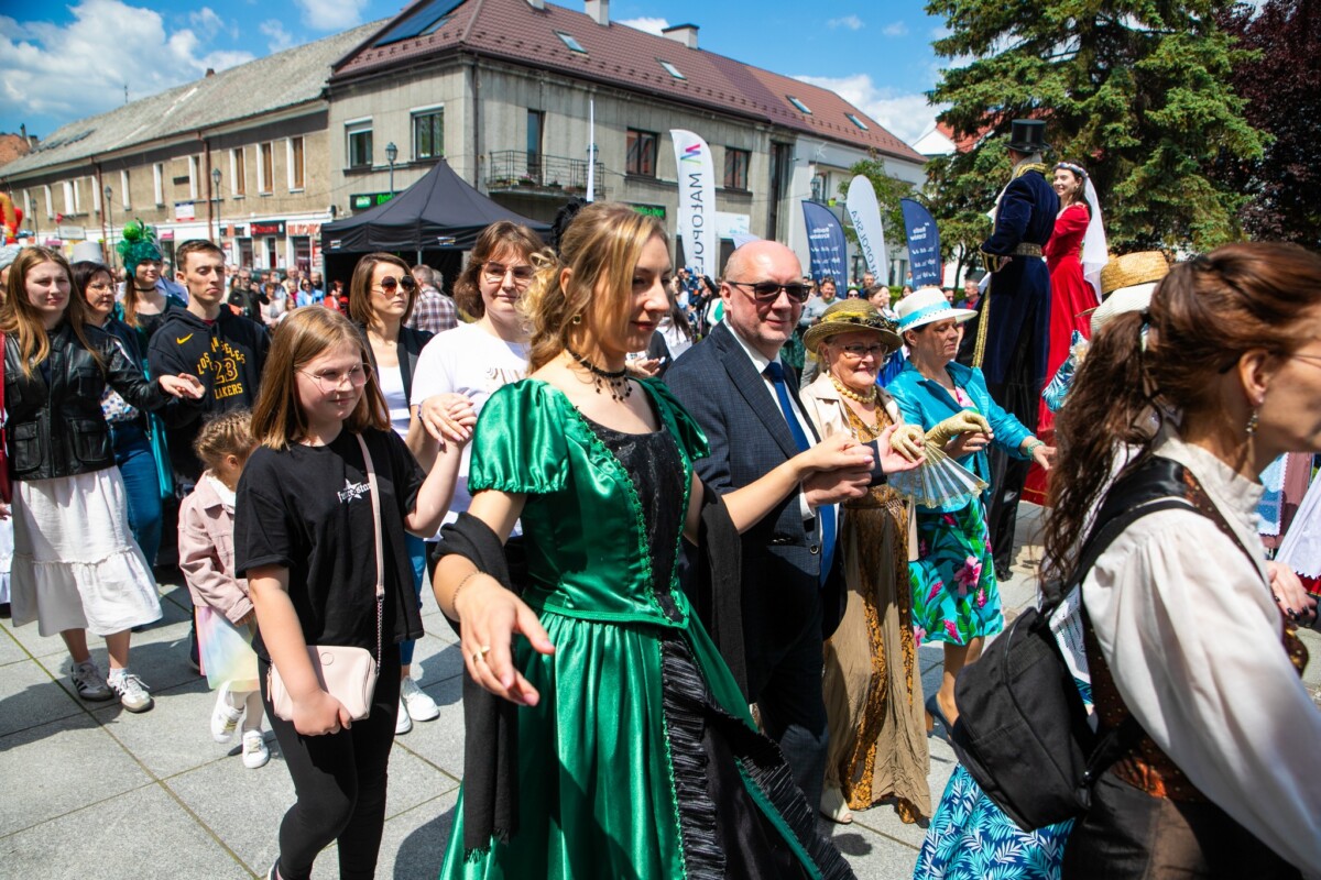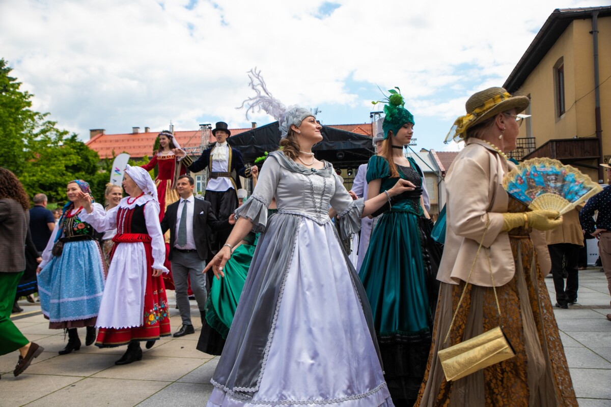 Już od 11:30 na krzeszowickim Rynku trwały przygotowania do wyjątkowego tańca. Dzięki instruktorom z Baletu Dworskiego Cracovia Danza, mieszkańcy i goście mogli nauczyć się kroków do majestatycznego poloneza, który o 12:00 popłynął przez Rynek. Do tańca przygrywała niezawodna Orkiestra Dęta Skala Pasji.