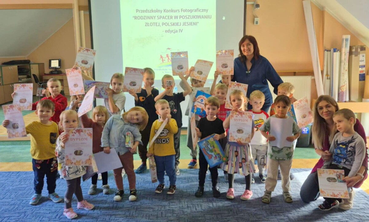 Jego celem było zachęcenie rodziców do wspólnych, jesiennych wędrówek z dziećmi oraz uwrażliwienie najmłodszych na piękno przyrody o tej porze roku. Do organizatorów wpłynęło 18 wyjątkowych fotografii. Komisja, w skład której weszli dyrektor placówki oraz nauczyciele, podkreślała wysoki poziom nadesłanych prac – zarówno pod względem technicznym, jak i pomysłowości. W efekcie przyznano równorzędne nagrody za pierwsze, drugie i trzecie miejsce.