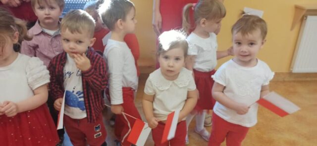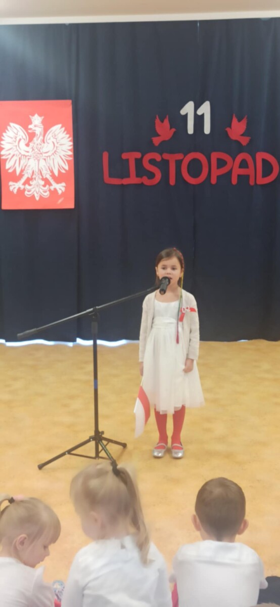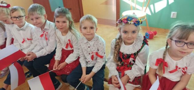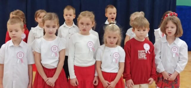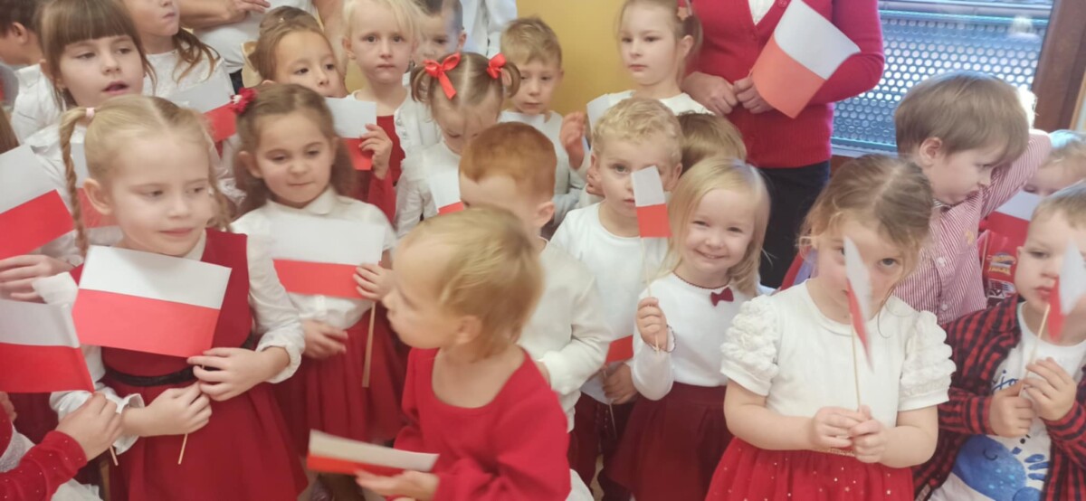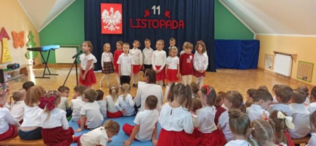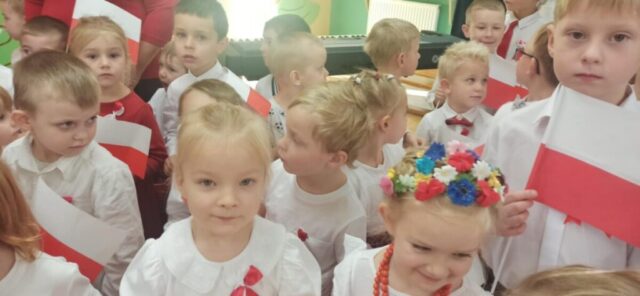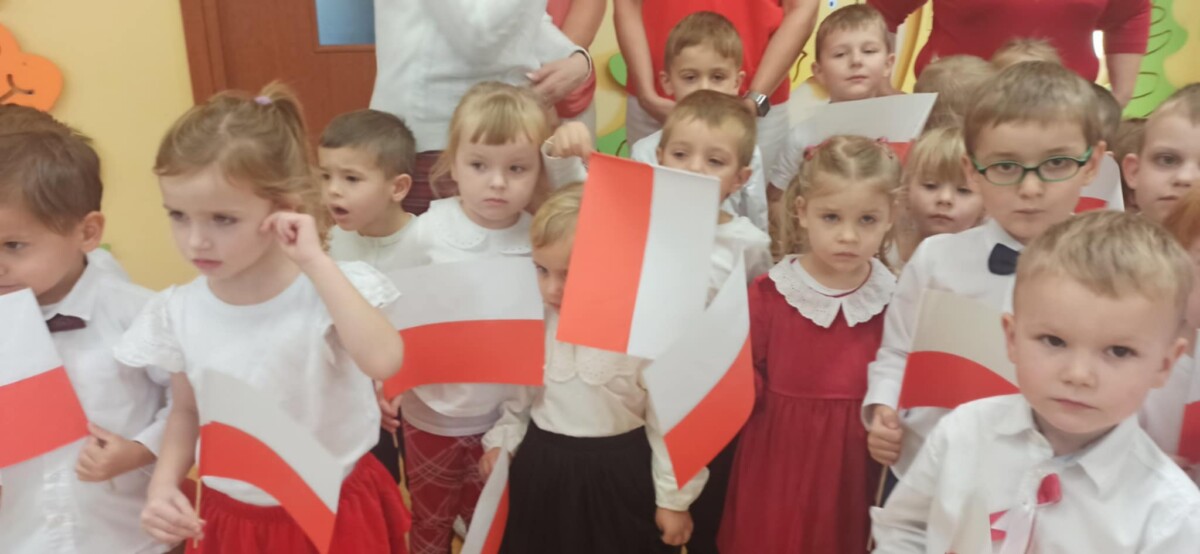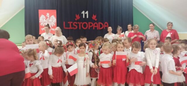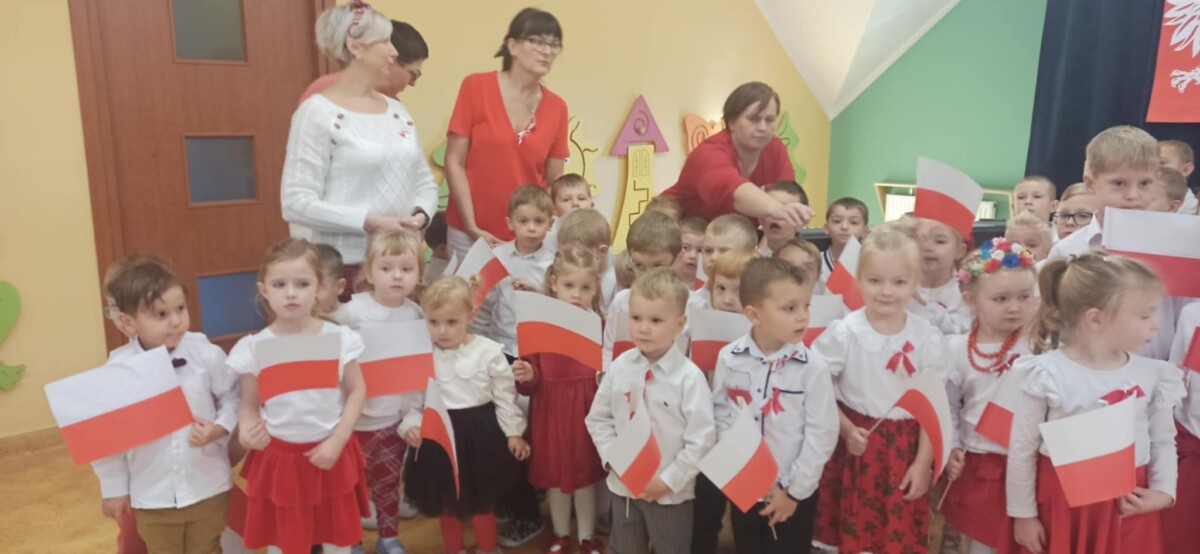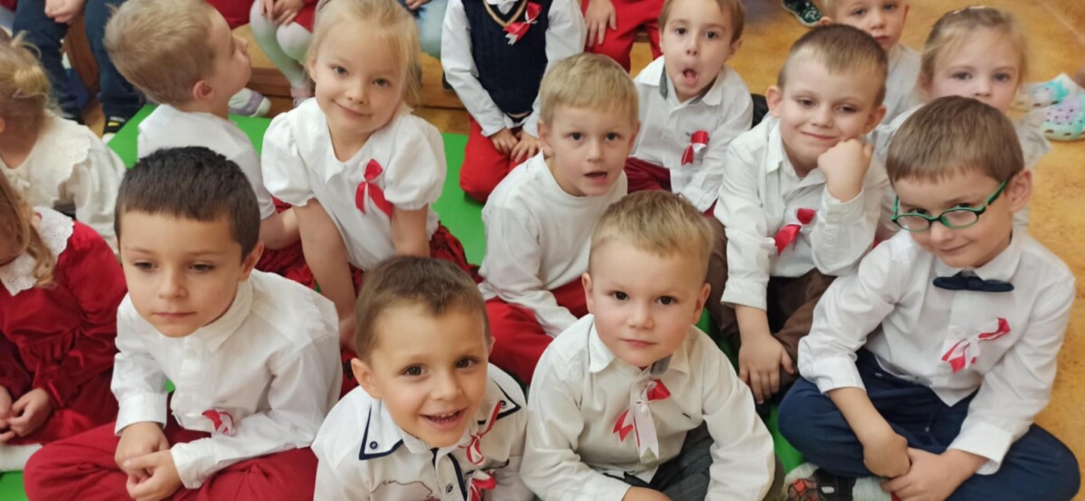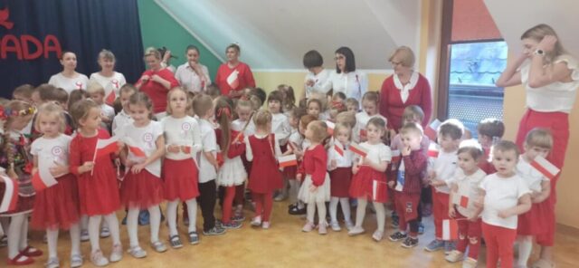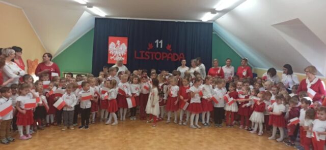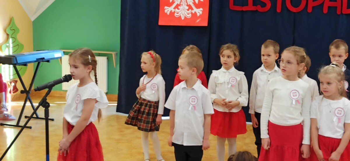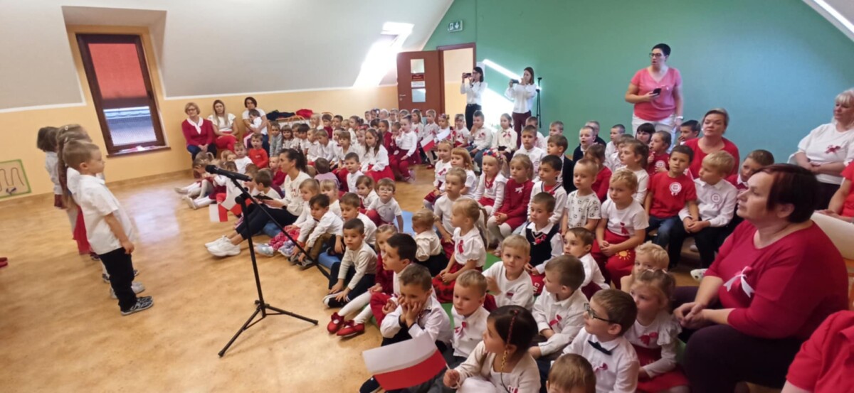 Dzieci wraz z nauczycielami i pracownikami placówki uroczyście odśpiewały cztery zwrotki „Mazurka Dąbrowskiego”, prezentując biało-czerwone barwy, własnoręcznie wykonane kotyliony oraz chorągiewki. Szczególną oprawę wydarzenia przygotowała grupa „Liski” pod kierunkiem nauczycielki Natalii P. Przedszkolaki zaprezentowały krótki montaż słowno-muzyczny z wierszami i pieśniami patriotycznymi, w tym utworami nagradzanymi podczas Gminnego Festiwalu Pieśni Patriotycznej.