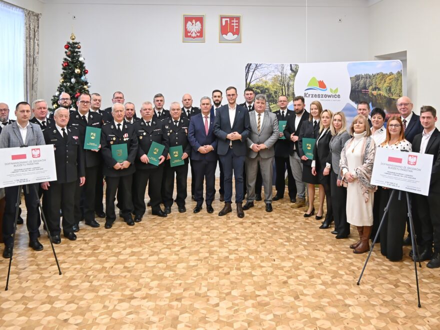12 stycznia 2026 roku w Sali Herbowej Urzędu Miejskiego w Krzeszowicach odbyło się spotkanie, podsumowujące realizację zadania finansowanego ze środków Programu Ochrony Ludności i Obrony Cywilnej na lata 2025-2026, połączone z uroczystym przekazaniem do użytkowania efektów rzeczowych powstałych w ramach projektu.