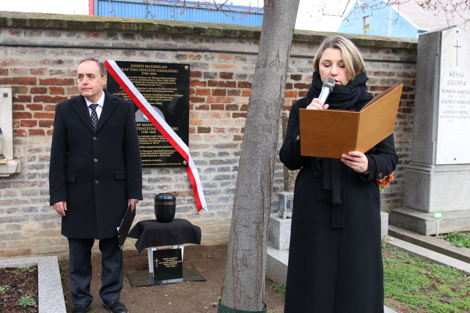 Zenon Kosiniak-Kamysz, chargé d’affaires Ambasady RP w Wiedniu, w swoim wystąpieniu przypomniał życie i zasługi Ossolińskiego dla polskiej i austriackiej kultury. Dr Michael Wolf, pastor Ewangelickiej Parafii Chrystusa Króla w Wiedniu, na terenie której znajduje się Cmentarz Matzleinsdorf, podkreślił radość z powstania nowego miejsca pamięci poświęconego tak wybitnemu uczonemu.