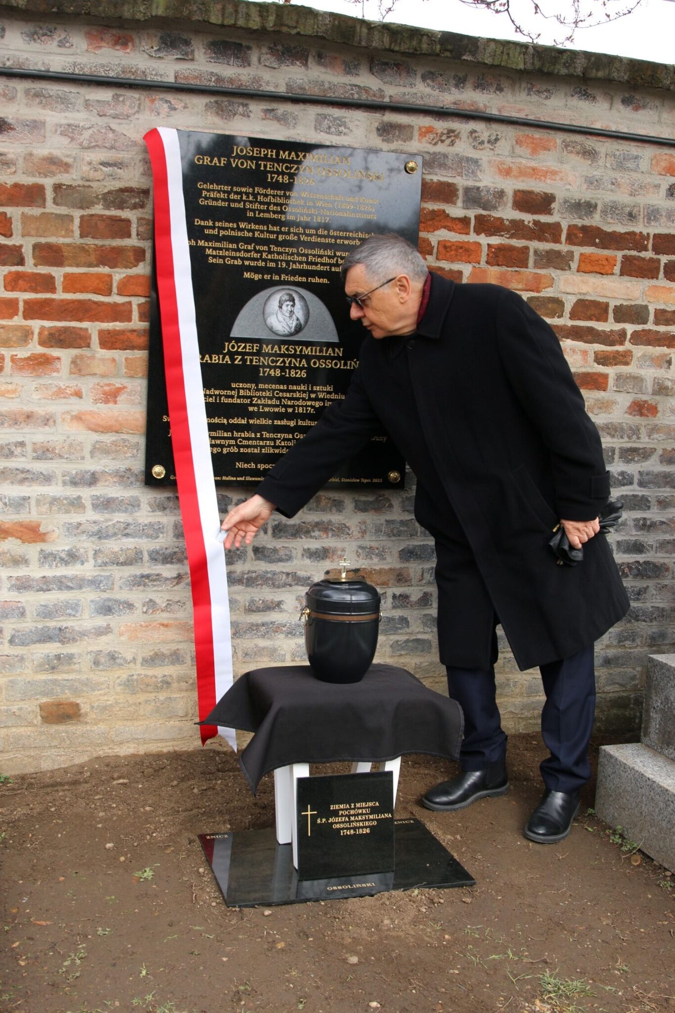 W niedzielę, 16 marca 2025 roku, na Ewangelickim Cmentarzu Matzleinsdorf w 10. dzielnicy Wiednia odbyła się uroczystość odsłonięcia pamiątkowej tablicy poświęconej Józefowi Maksymilianowi Ossolińskiemu – wybitnemu uczonemu, badaczowi literatury, pisarzowi, a przede wszystkim twórcy Zakładu Narodowego im. Ossolińskich.
